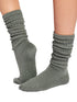 ●足首を冷やさないクルー丈のソックス。リブソックス
